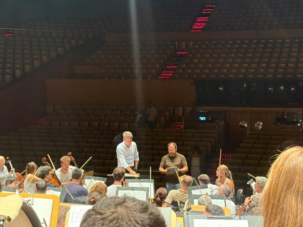 Ensayo de la Resurrección con la ROSS bajo la batuta de Lucas Macías, y los coros del Teatro de la Maestranza y el Joven Coro de Andalucía, dirigidos por Marco Antonio García de Paz.